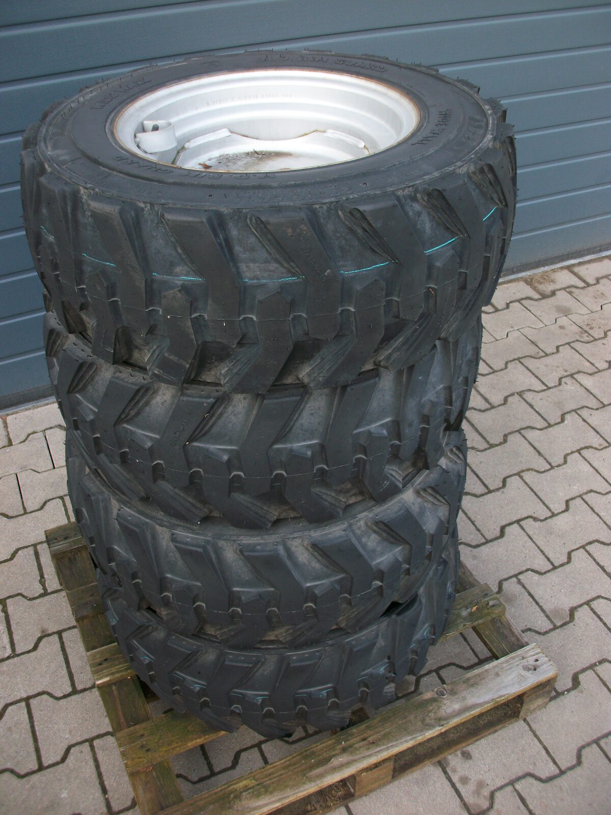 Satz (4 Stück) Kompletträder 27×10.5-15 EM Skid Power HD auf 5-Loch Felge 8LBx15 ET-5, 112 mm Lochkreis, 66,6 mm Achsloch, Felge silber lackiert (leichter Rostansatz)